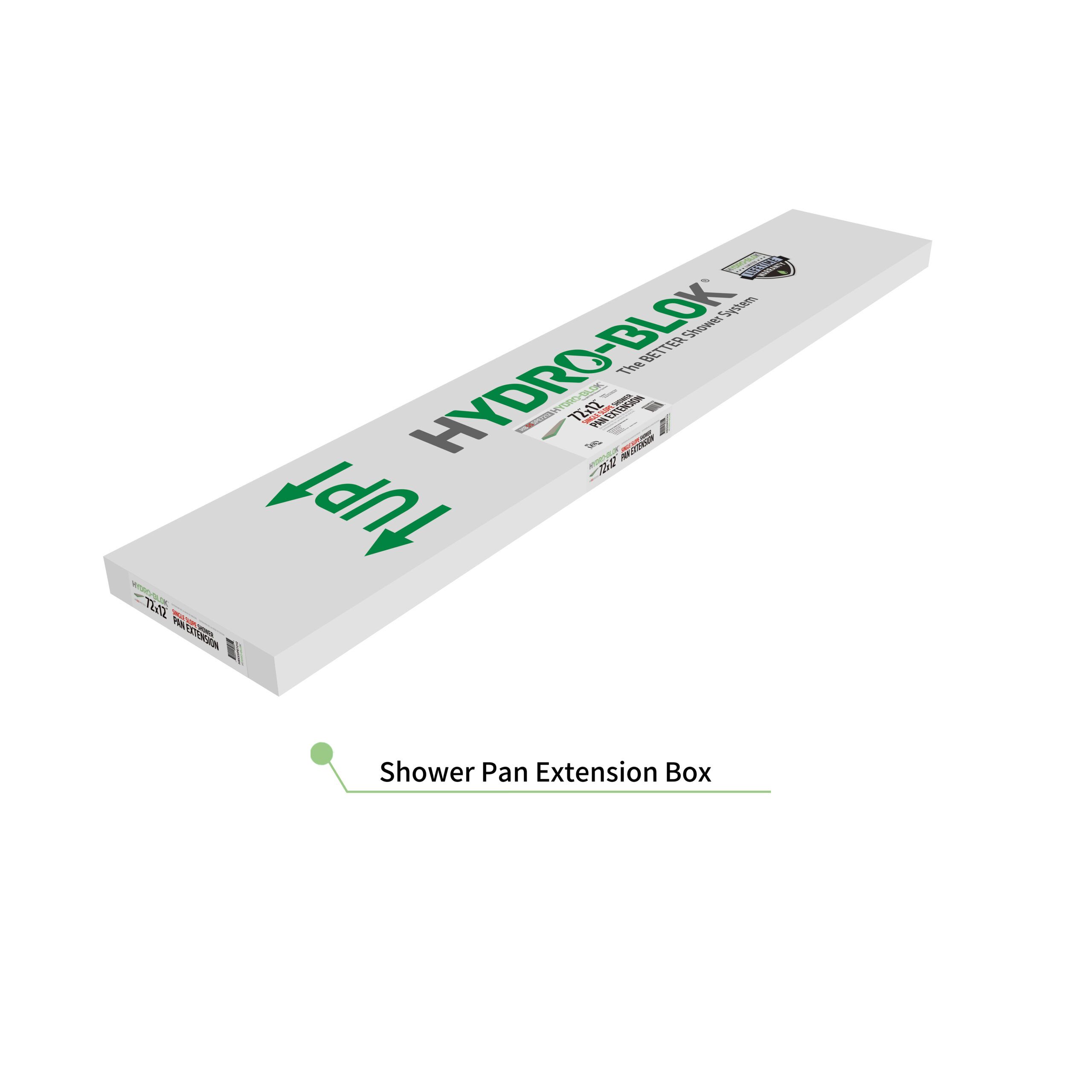Need to make your HYDRO-BLOK Single Slope Shower pan a little larger? Then our line of shower extensions is what you need. The HBSSSP7212EXT 72″ x 12″ Single Slope Shower Pan Extension allows you to continue your shower floor and maintain proper slope throughout. Built with the same high quality construction and dependability as our full line of shower pans, wallboards and accessories.