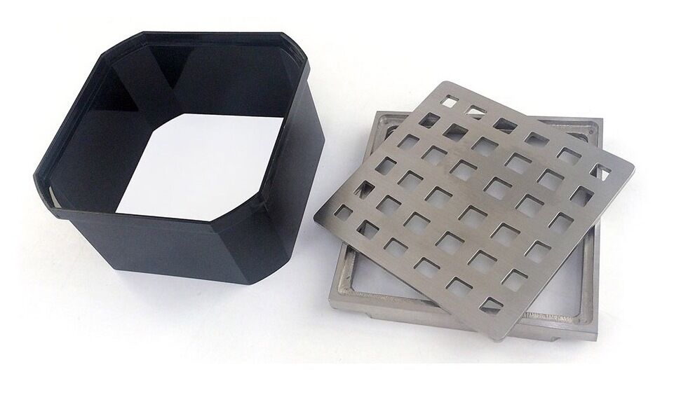Our drain cover and tray feature rust-free solid stainless steel construction for long life. Our 1.5 inch plastic riser can be easily cut to match the height of your tile or stone installation. Included with each HYDRO-BLOK shower pan and available separately at your HYDRO-BLOK dealer.